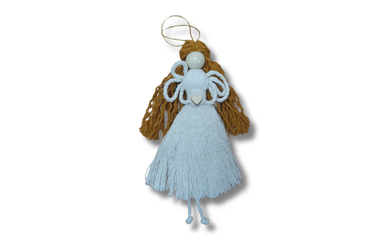 Baltos tylos lašelis – rankų darbo macrame eglutės žaisliukas