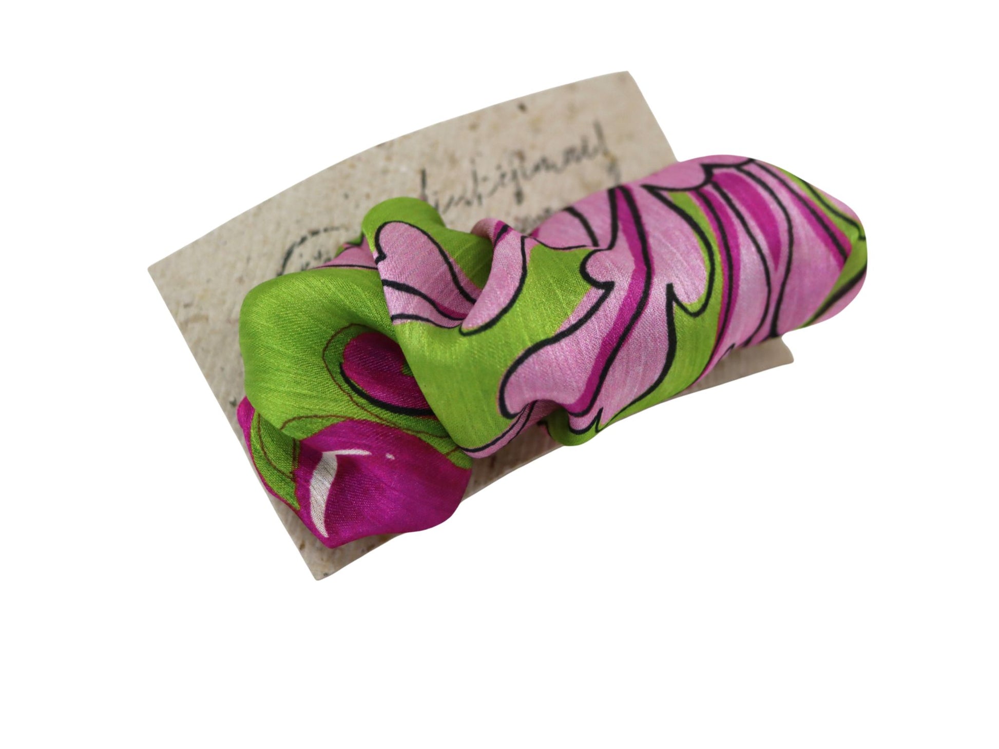 Rankų darbo plaukų segtukas su ryškiu, bijūnų įkvėptu raštu. Stilingas ir lengvas aksesuaras, puikiai tinkantis kasdieniam įvaizdžiui ar kaip subtilus akcentas šventinėms progoms.